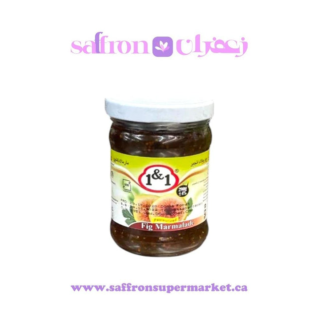 Delight in the lush sweetness of 1&1 Fig Marmalade, offered in a convenient 350g jar. This exquisite marmalade captures the natural richness of ripe figs, transformed into a smooth and spreadable preserve. Perfect for enhancing breakfast toast, pairing with cheeses, or as a flavorful addition to desserts, our fig marmalade brings a gourmet touch to your table. Each jar is packed with the authentic taste of figs, ensuring a treat that is both delicious and naturally nutritious. Enjoy a spoonful of this marmalade to add a sophisticated sweetness to any dish or as a delightful topping on your favorite snacks.