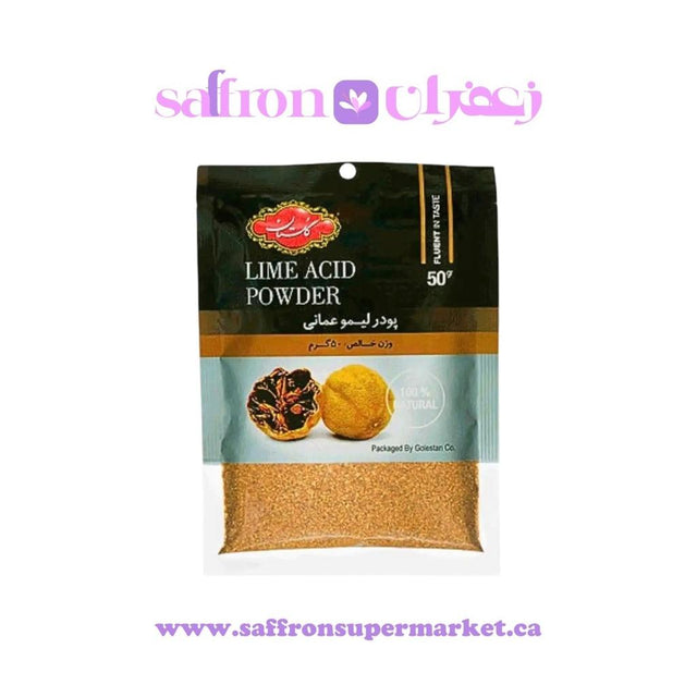 Add an authentic tangy twist to your dishes with Golestan Dried Lime Powder, available in a 50g pack. Made from ground dried limes, this powder brings the unique, citrusy flavor of Persian dried limes to your cooking. Perfect for seasoning stews, rice dishes, soups, and marinades, Golestan Dried Lime Powder adds a burst of refreshing, sour flavor that enhances the depth of your meals. A must-have ingredient for those who love Middle Eastern and Persian flavors.