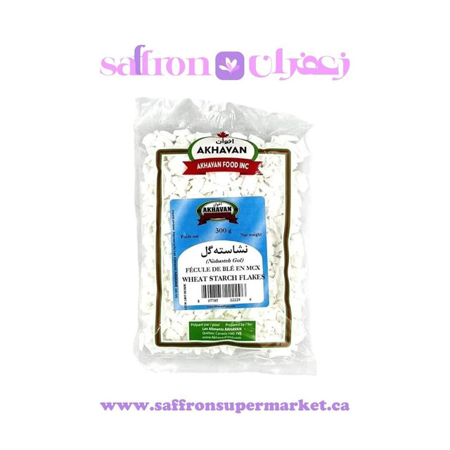 Enhance your cooking with Akhavan Wheat Starch Flakes (Nishateh Gol), available in a 300g pack. These premium wheat starch flakes are commonly used in Middle Eastern and Persian desserts and savory dishes, providing a delicate texture and natural sweetness. Perfect for making traditional sweets like Faloodeh, or adding to soups and stews for thickening, these wheat starch flakes are versatile and easy to use. Rich in starch and ideal for gluten-free cooking, Akhavan Wheat Starch Flakes are a must-have ingredient for creating authentic, flavorful dishes.